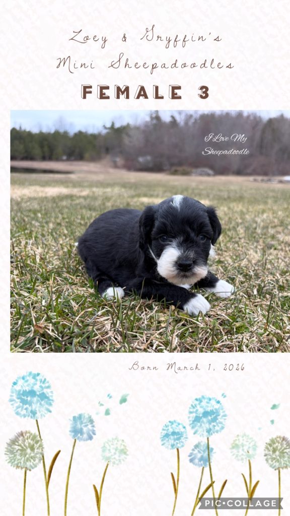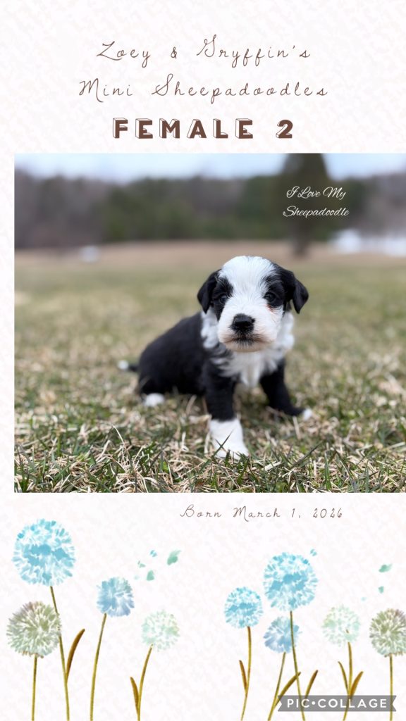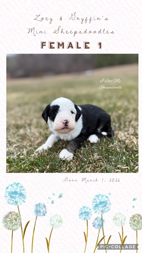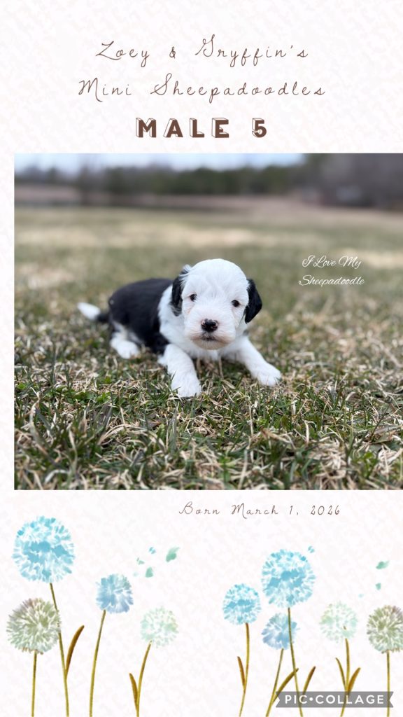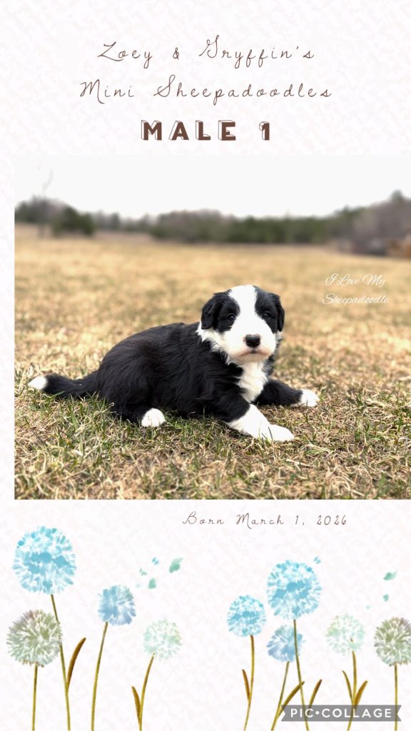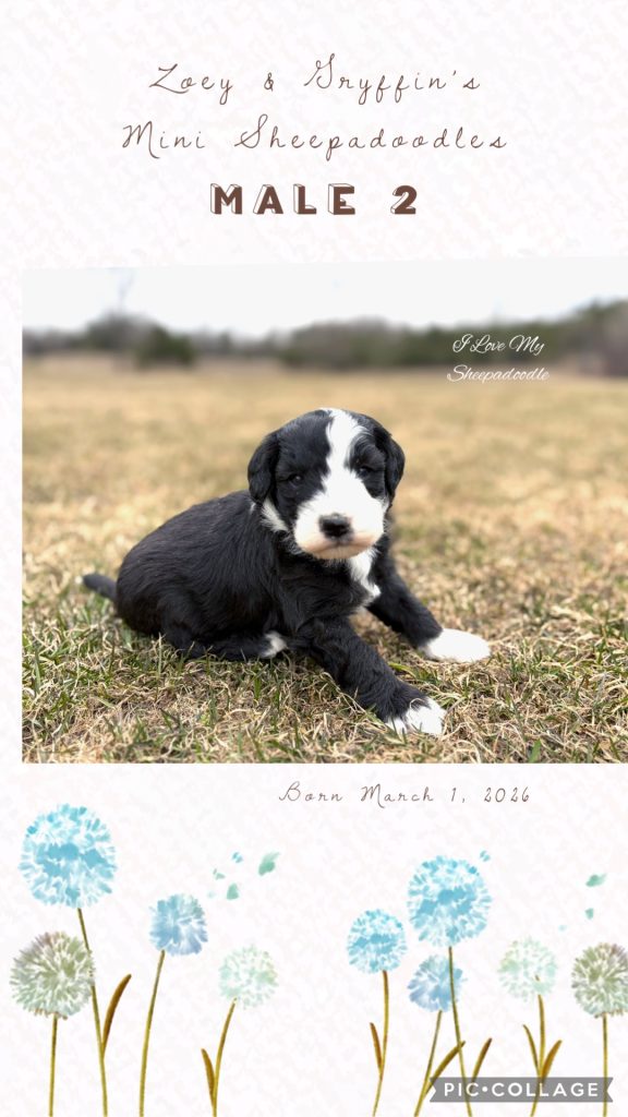 We have a gorgeous litter of Mini Sheepadoodles from Zoey & Gryffin. These pups are just like the Old English Sheepdog but in a small size! So if you enjoy the Sheepdog but find the size too much, this is a litter for you!