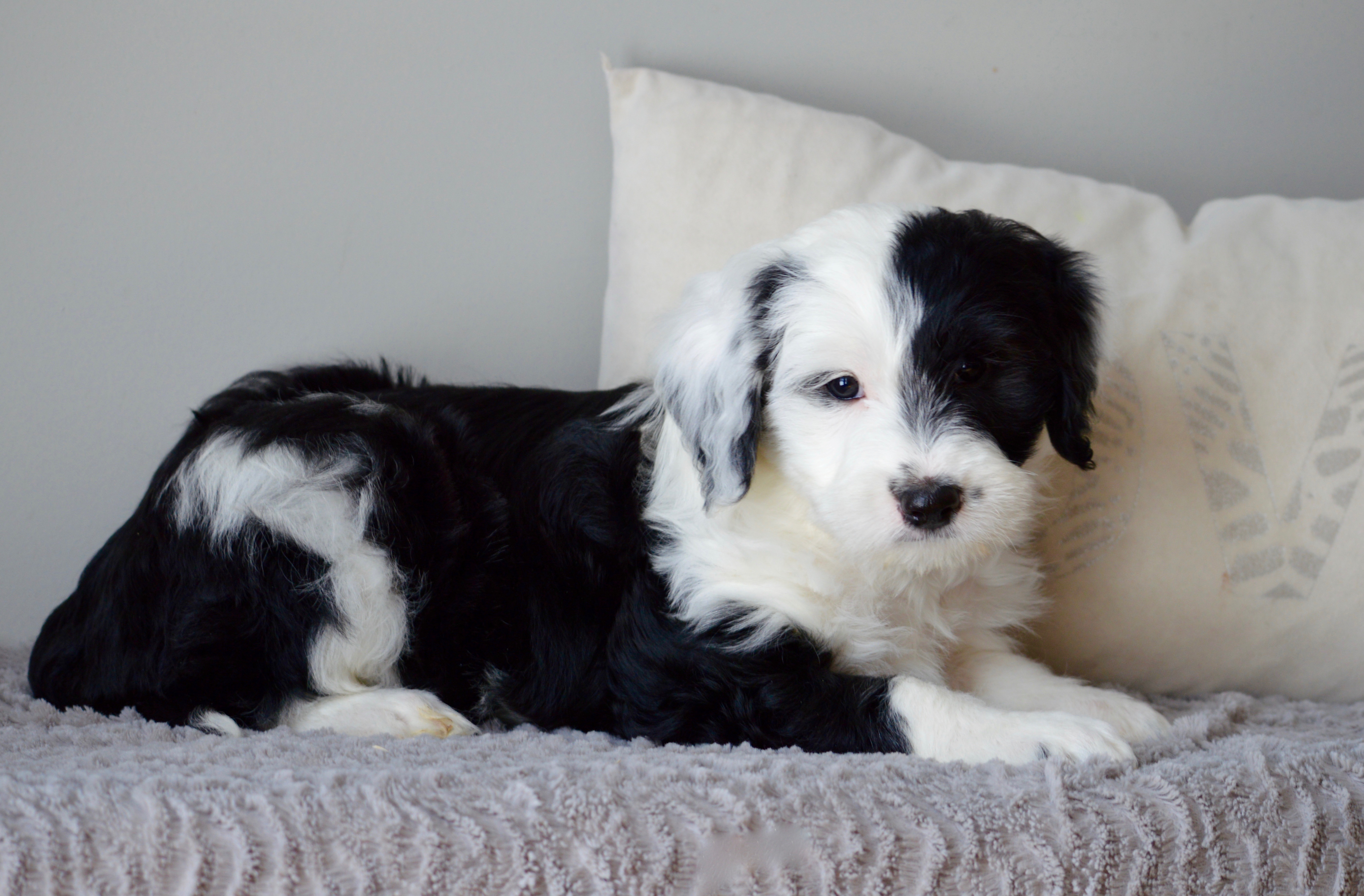 Jewels Light Black Collar Boy 8 wks Published February 27, 2019 at 5623 × 3695 in Moyen Sheepadoodles