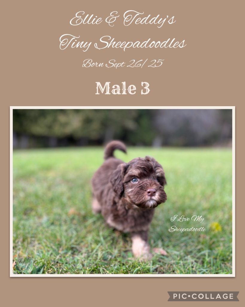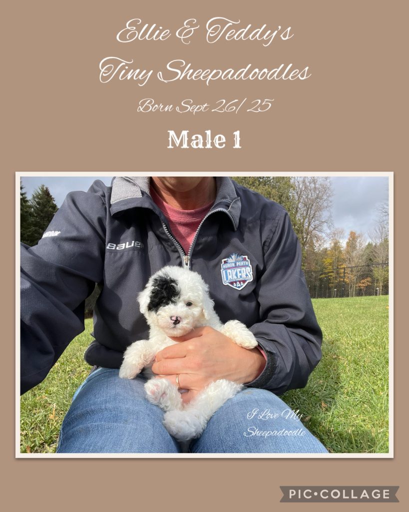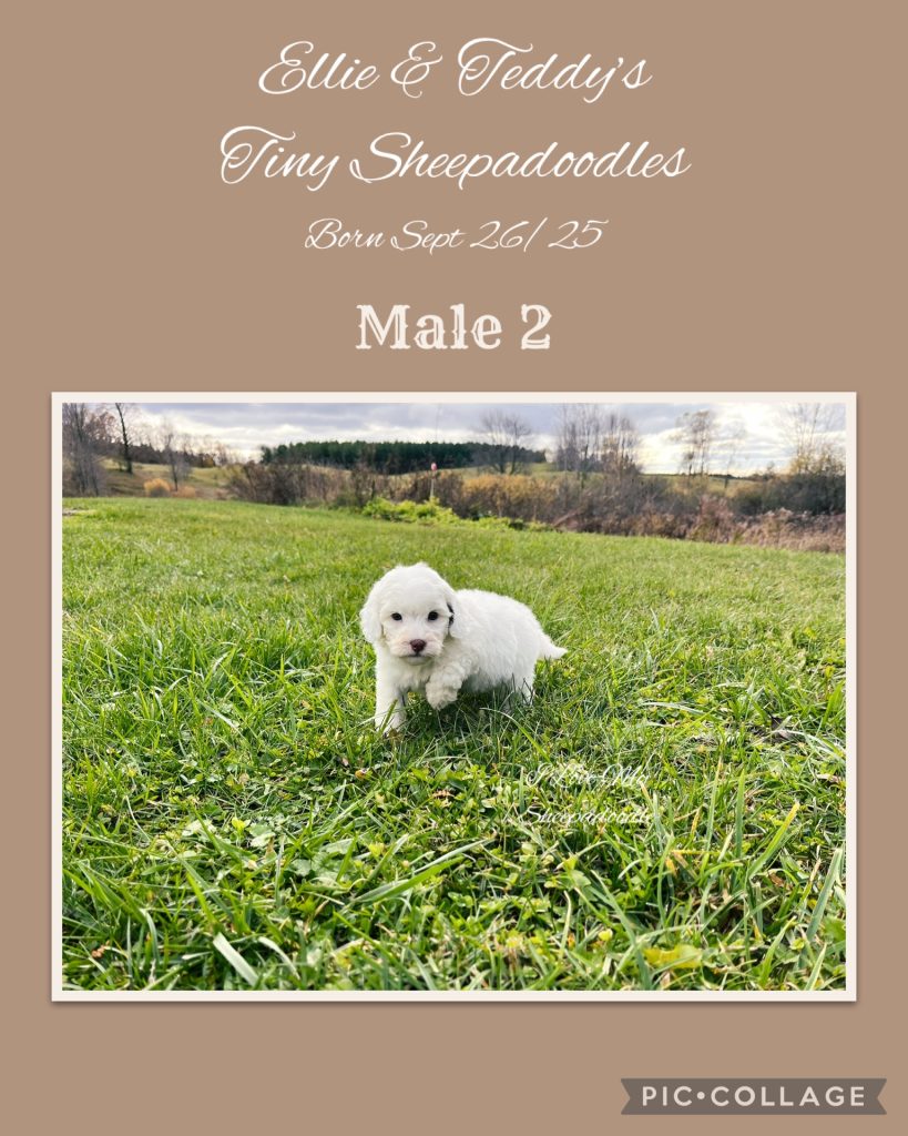 These puppies are Multigen Sheepadoodles having 18% Old English Sheepdog and 82% Mini Poodle, similar to a F1b Sheepadoodle. These pups will have little to no shedding with soft curly or wavy coats. We would compare the hair in Sheepadoodles similar to human hair.
